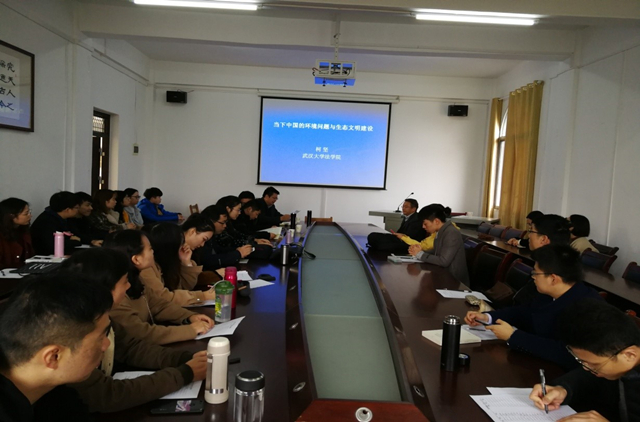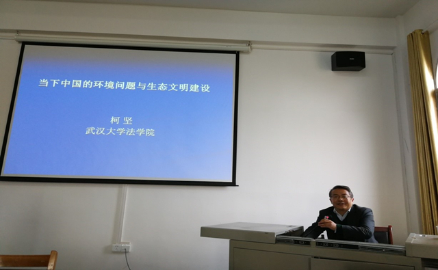 (通讯员王国飞)11月21日下午,武汉大学柯坚教授应邀来公司讲学。柯坚教授在英国上市公司官网365311会议室作了题为《当下中国的环境问题与生态文明法治建设》的学术报告。英国上市公司官网36540余名师生代表参加了报告会。报告会由英国上市公司官网365经理金明浩教授主持。