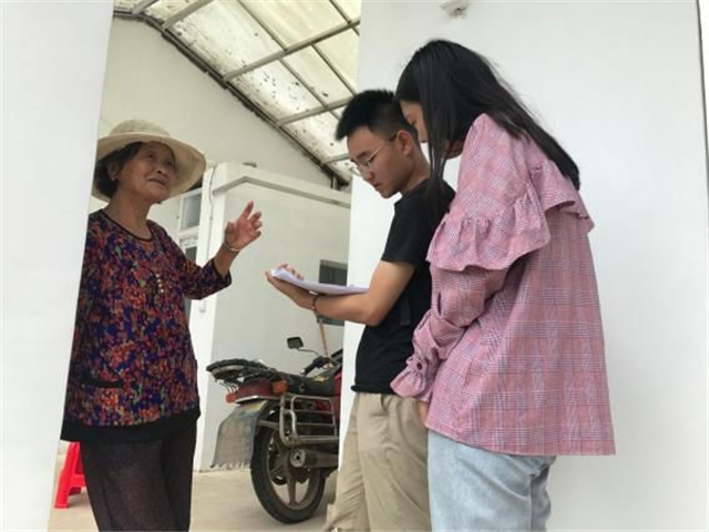 随后,实践队队员们沿着东柳村的主干街道开展问卷调研,深入每一户群众家中,知群众之所想,感受扶贫工作实效。东柳村村民热情质朴,积极支持调研工作,为实践调研提供了坚实的群众基础。在问卷调研中,45个同学分为八个小组分头行动,对东柳村进行精准扶贫状况的调研。与此同时,每组小组长与指导老师随时沟通,在微信群定时汇报小组成员安全状况,保障暑期实践队伍的安全问题。