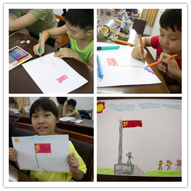 2019年8月22日,本次爱心家教在萤火志愿者和孩子们的共同合作下,画上了完美的句号。在《我和我的祖国》的歌声的陪伴下,大家共同完成了一幅幅绘画,这画中是鲜艳的国旗,是种在孩子们心灵中的爱国之情的种子。