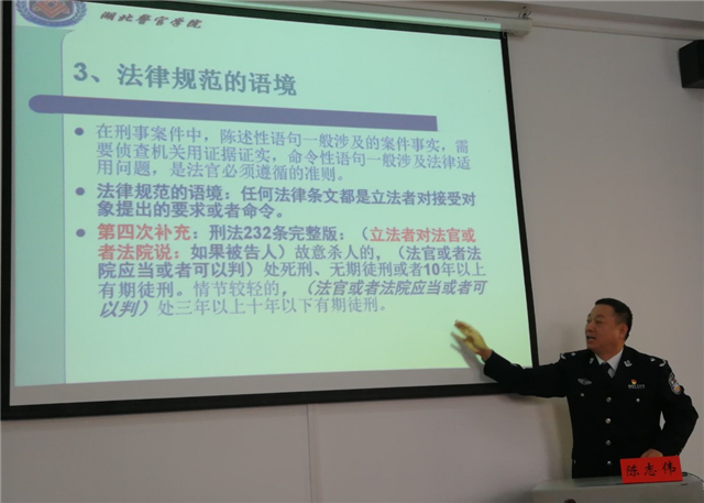 (通讯员 刘东野 王国飞)2019年12月6日下午,湖北警官公司副经理、公司客座教授陈志伟来院讲学。公司代江龙、王国飞副教授以及60余名本科、硕士生参加讲座。金明浩经理出席并主持讲座。