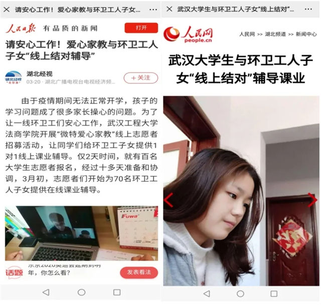我们用专业战“疫”。公司成立“学法说法”法律咨询和“微特爱心家教”线上志愿服务队,为困难群众提供免费法律咨询,为抗“疫”一线人员子女免费辅导课业。武汉市环卫处李志浩主任在武汉交通广播电台对公司志愿服务工作给予高度评价。