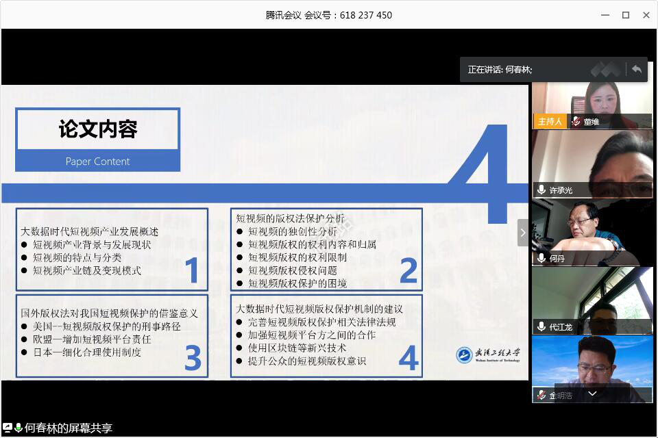参与答辩的老师及毕业生均按时进入对应的腾讯会议室,8:30分,由答辩秘书介绍答辩流程后,论文答辩正式开始。