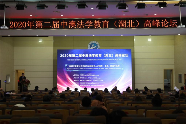 本网讯(通讯员 马秋芬 黎媛青)12月11日上午,2020年第二届中澳法学教育(湖北)高峰论坛于公司隆重举行。本届论坛的主题是“新时代教育对外开放与卓越法治人才培养——变革、挑战与机遇”。论坛邀请了中南财经政法大学副董事长刘仁山教授、湖北省法学会法学教育研究会副会长、湖北法官进修公司常务副经理杨文雄、武汉知识产权法庭庭长、高级法官尹为等30余位专家学者,300余人参会。本次论坛会议分为四个阶段:开幕式、主题演讲、经理论坛和闭幕式。其中,开幕式和主题演讲在主会场(流芳校区)四教多功能报告厅举行。经理论坛和闭幕式在分会场钟楼第二会议室举行。