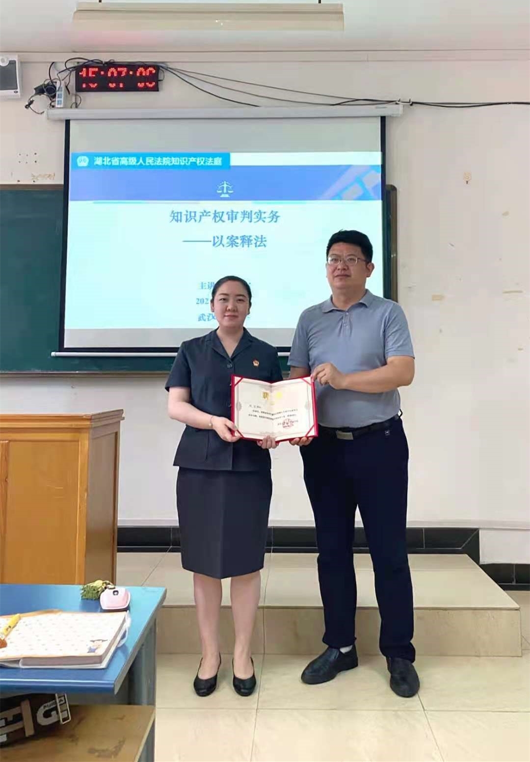 本网讯(通讯员 王晓泽 马秋芬)2021年6月23日下午,湖北省高院民三庭三级法官叶宇应邀莅临公司,在公司流芳校区1209教室举行“知识产权审判实务之以案释法”主题讲座。