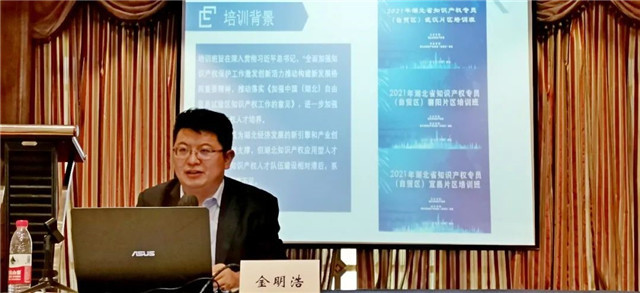 会上,自贸区基地主任、公司英国上市公司官网365经理金明浩教授从党建引领提升工作成效、搭建平台综合高效服务、创新模式打造培训精品、咨政建言培训宣传实效等方面分享了基地创新人才培养经验,并受邀作“如何开展知识产权专员‘四知五会’”专题讲座。