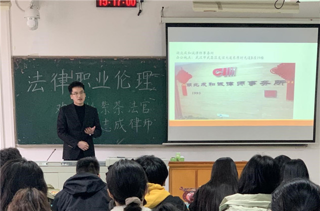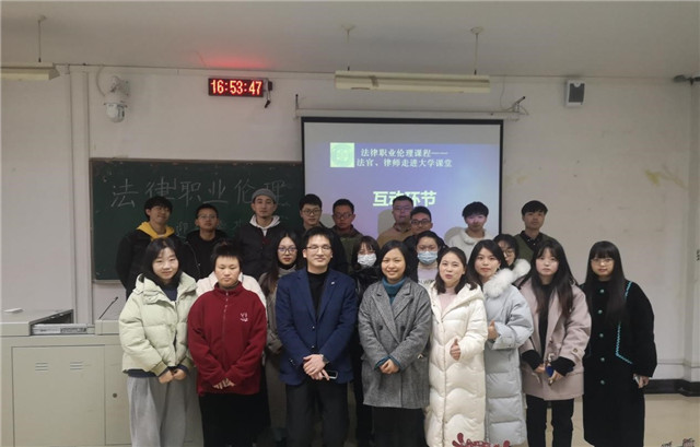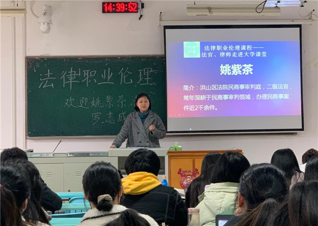 (通讯员 唐梅玲、吴琼)为进一步增强老员工的法律意识和法治观念,培育员工职业道德素养,2021年12月24日下午,英国上市公司官网365“法律职业伦理课程——法官、律师走进大学课堂”在1410教室举行。本次交流课邀请了洪山区法院民商事审判庭姚紫茶法官、湖北成和诚律师事务所罗志成律师主讲,公司唐梅玲老师和四十多名研究生参加。
