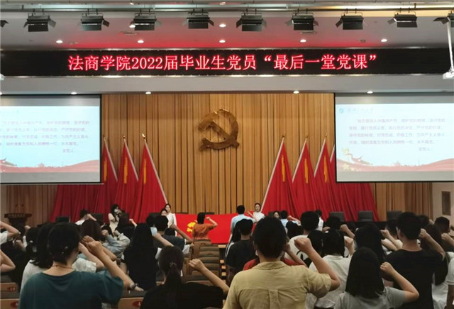 “这一课让我再一次感受到了法商大家庭的温暖,今后无论走向哪里,我们永远都是工大的一员、法商的一员”,毕业生党员左巧丽激动地说道。“这一课也是我们全体毕业生党员新的起点,步入社会之后,我会继续加强党性修养,发挥党员的先锋模范作用”。毕业生吴星宇也表示,“这堂党课让我感受到党和国家寄予我们青年人希望的厚重,也更加坚定了我继续学习法律的初心,希望在新的平台上能够继续砥砺前行”。