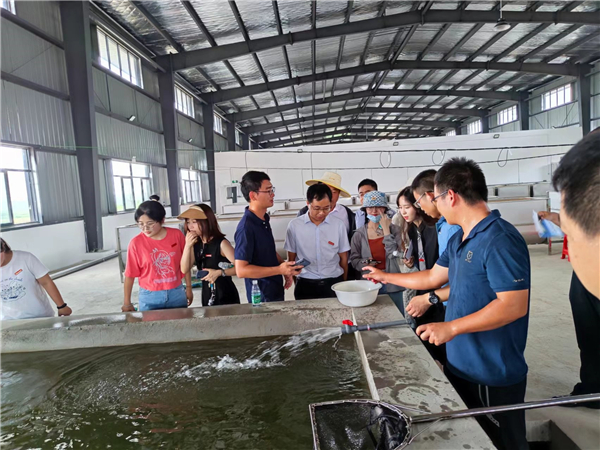 7月18日上午,实践团队实地调研了陶店乡幸福村鱼苗孵化基地和程德岗村产业扶贫项目,详细了解他们以党建引领产业扶贫,将产品资源转化为产业优势,促进农业经济转型升级发展,助力实现乡村振兴的具体举措。