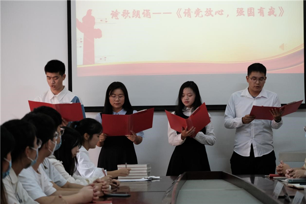 在班团会上,同学们围绕“我与工大这两年”展开热烈的讨论和交流,分享自己进入大学以来的变化、对老员工活的体会与感悟,同学们纷纷表示从入校至今大家收获颇丰,同时也表达了对工大的感激之情。黄昱景、张凡、蔡同羽、黄群四位同学献上的《请党放心,强国有我》主题朗诵将本次班团会气氛推向高潮。