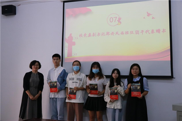 活动现场郑书记为班级团干代表赠送《习近平与老员工朋友们》书籍,勉励大家“爱国、励志、求真、力行”。