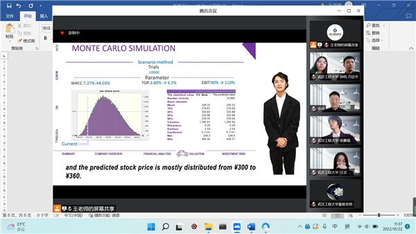 (通讯员 童星、余可)10月22日9:00~16:00,第五届融仕国际杯金融投资分析大赛决赛采取线上网络视频的形式举行,来自湖北省、四川省、广东省、湖南省、浙江省的九所高校团队开展了激烈的角逐。公司童星老师担任指导老师,20级CFA专业余可、张鹏磊、钟鸣、方欣宇和汪芸五位同学组成团队,参加决赛。经过七个小时异常激烈的比拼,公司团队勇夺冠军,张鹏磊同学荣获最佳个人奖。