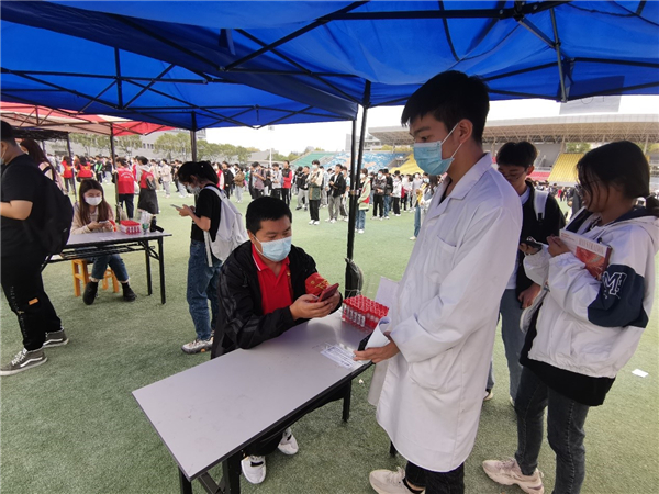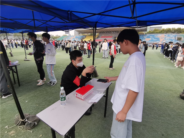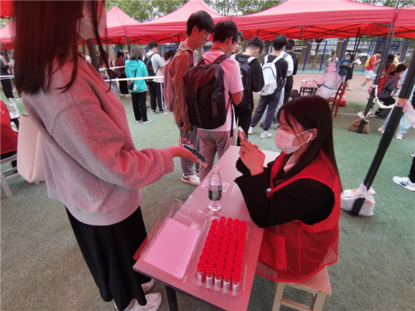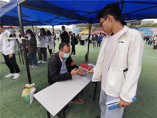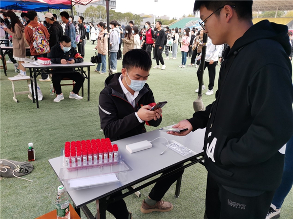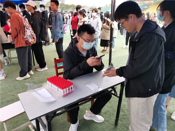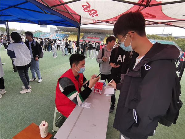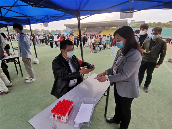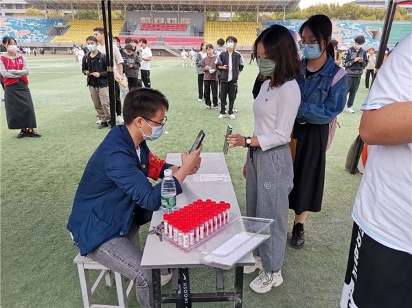 现场,师生党员们坚守岗位、分工协作、细致认真,熟练扫码、采样,参与维护现场秩序,从15:00到18:00,共采集21536份师生核酸样本,圆满完成采样工作。