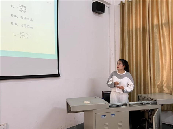 会议伊始,龚梦琪老师按照公司青年教师讲课比赛的规则,讲授了需求弹性的内容。她的讲授案例丰富,语言幽默,深入浅出,体现了她优良的教学素养和精心的准备,赢取了在场观众的掌声。