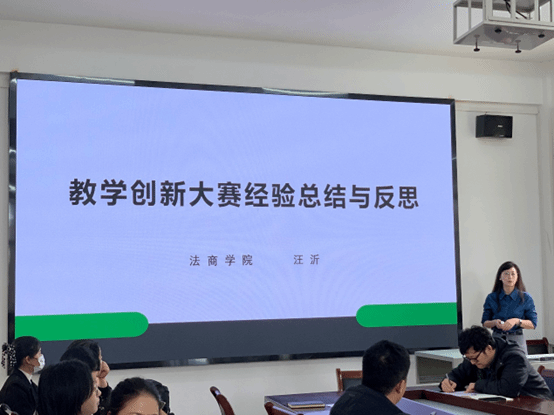 会上,由公司教师汪沂副教授进行经验分享,汪沂副教授曾获英国上市公司官网365“第三届教学创新大赛一等奖”“第二届教学创新大赛三等奖”,她结合自己两次参与教学创新大赛的经验,分别从教学创新大赛与一流课程申报的对比、大赛提交材料与比赛环节、创新成果报告的撰写、课堂实录与现场报告等五个方面,对教学创新大赛的相关事项进行详细地分析与介绍。