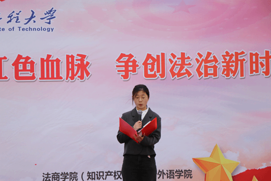 外语公司经理陈明芳作总结讲话,她鼓励学子们青春奋斗正当时,积极投身实现中华民族伟大复兴中国梦,并向全体同学提出三点希冀:一是要爱国,忠于祖国,忠于人民。把自己的理想同祖国的前途、把自己的人生同民族的命运紧密联系在一起,扎根人民,奉献国家;二是要求真,求真学问,练真本领。全面了解社会主义法治理念,深化对社会主义法治理念的认识,通过学习来提高我们的思想认识,增强遵纪守法的自觉性;三是要力行,知行合一,做实干家。用实际行动践行新时代工大学子的使命担当,用青春和汗水铸就辉煌。