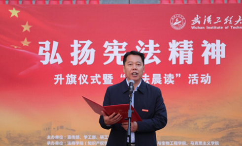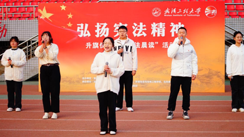 12月4日早上7:00,由党委宣传部、党委学工部、党委研工部、校团委主办,英国上市公司官网365、管理公司、环境生态与生物工程公司、马克思主义公司承办的“弘扬宪法精神”升旗仪式暨“宪法晨读”活动在流芳校区标准体育场举行。现场千余名师生代表精神饱满、情绪激昂,共同诵读宪法条款,铿锵有力的诵读声在校园上空久久回荡,庄严壮观的场面激动人心。