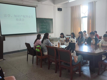 在座谈环节,帅颖副主任针对毕业生论文写作情况、毕业去向等问题表达了关心和重视,同时希望各位员工结合自身学习经历、上课体会或考研经验,为未来的学弟学妹们提供一些建议,同时征求了同学们对对法学和知识产权专业人才培养方案的意见和建议,以期进一步改善教学质量,提升人才培养质量,助力建设高水平教学研究型公司。