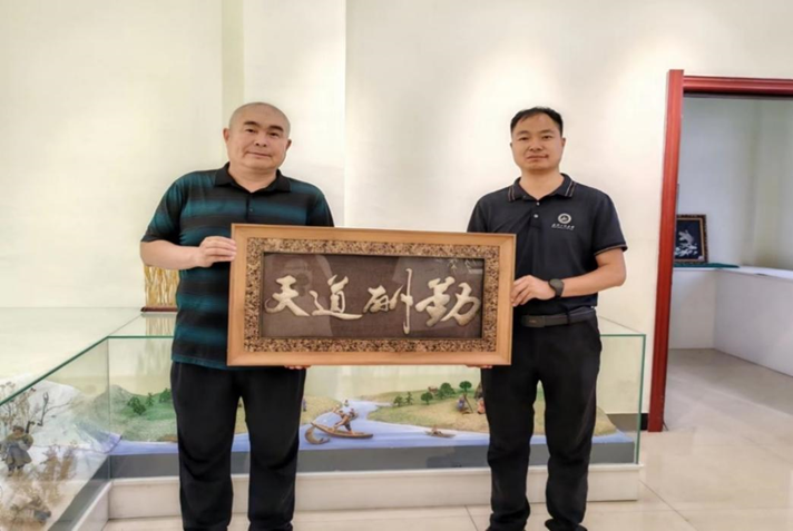 (通讯员 肖文瑾 袁双桂)为深入贯彻落实中央民族工作会议精神,完整准确全面把握和贯彻习近平总书记关于加强和改进民族工作的重要思想,有形有感有效推进铸牢中华民族共同体意识,公司组织暑期社会实践团,重走习近平总书记的考察路线,于7月28日赴同江市八岔赫哲族乡开展调研,八岔赫哲族乡中心校董事长毕洪兵赠送国家级非物质文化遗产:赫哲族鱼皮画作品《天道酬勤》。
