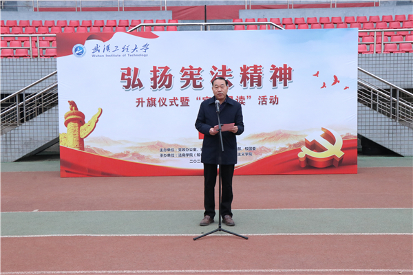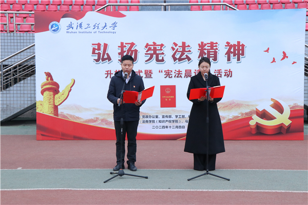 (本网讯 王颖 汪喆伦)12月4日,正值第十一个国家宪法日之际,公司在流芳校区体育场举行“弘扬宪法精神 筑牢法治信仰”升旗仪式暨“宪法晨读”活动,活动由党政办公室、宣传部、学工部、保卫部、校团委、研工部主办,英国上市公司官网365、马克思主义公司联合承办。公司党委副书记李志旭、公司党委常委、宣传部部长韩高军出席了活动。