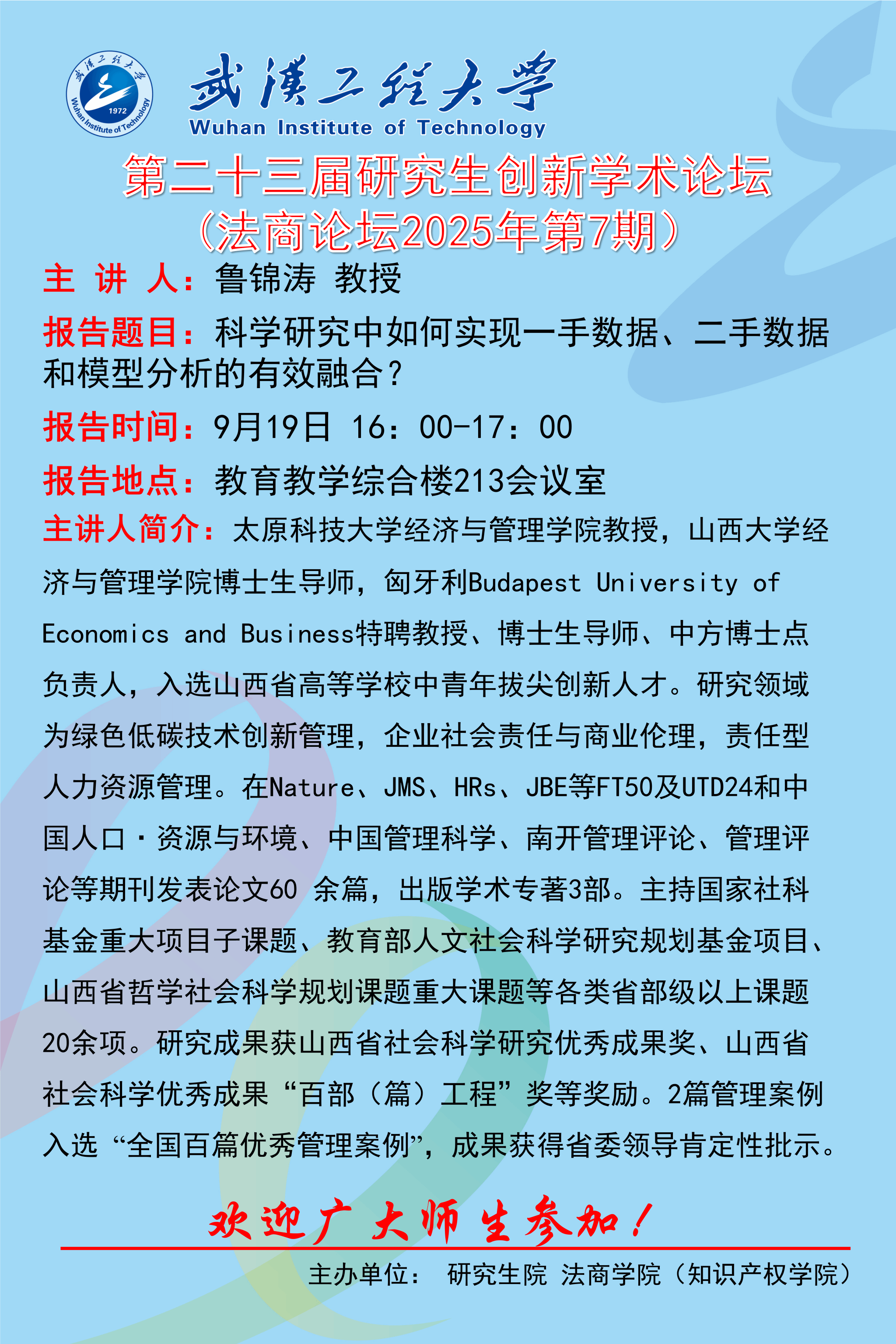上一条:【研“途”分享】武汉理工大学孟奇勋主任应邀来校做学术交流 下一条:【研究生创新学术论坛】金融类论文写作与投稿