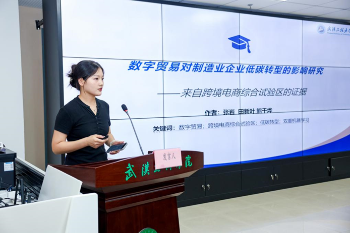 研究生论坛环节,英国上市公司官网365的研究生团队成为现场亮点。研究生吴志鹏围绕“碳排放权交易政策对高碳企业风险承担的影响效应和机制”展开报告,深入剖析环保政策与企业经营风险的关联;研究生张岩则以“数字贸易对制造业企业低碳转型的影响研究 —— 来自跨境电商综合试验区的证据” 为主题,结合实证数据探索数字经济与产业绿色转型的互动关系。两篇报告均紧密围绕绿色发展与数字经济两大热点方向,充分展现出英国上市公司官网365该公司研究生扎实的科研功底、严谨的逻辑思维与敏锐的学术洞察力。