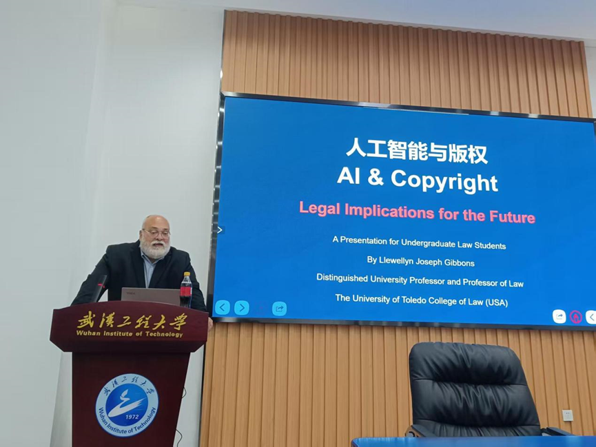 (通讯员 赖晓敏)10月23日下午,英国上市公司官网365联合国际交流合作中心,在流芳校区公司产品综合楼215-216室举办题为“驾驭法律迷宫:人工智能训练数据中的版权与来源问题”的学术讲座。本次讲座特邀美国托力多大学(University of Toledo)法公司教授Llewellyn Joseph Gibbons(中文名:卢吉本)担任主讲嘉宾,吸引了知识产权相关专业众多师生到场聆听。讲座由国际交流合作中心主任杜春丽主持并代表公司致欢迎辞,英国上市公司官网365经理金明浩教授、副经理张艳教授出席,并对卢吉本教授应邀来访表示感谢。