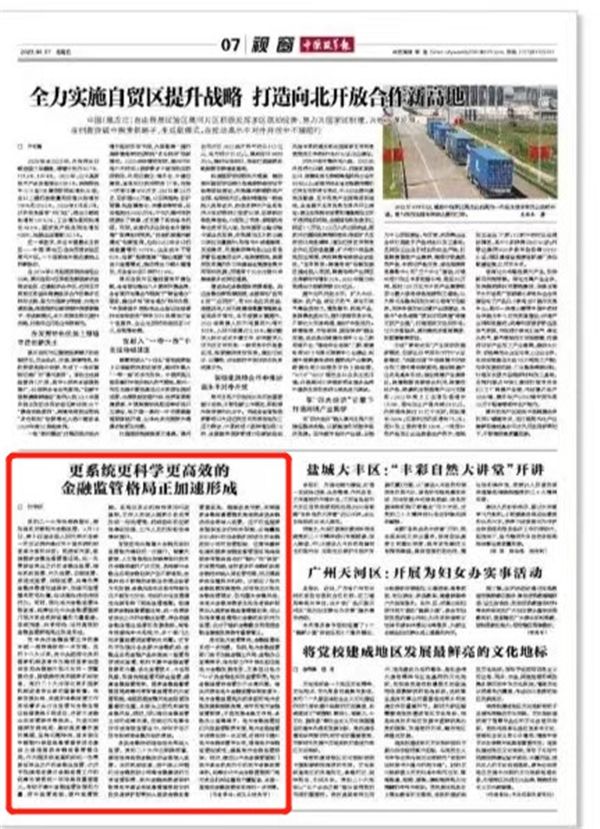 文章链接:更系统更科学更高效的金融监管格局正加速形成——中国改革报