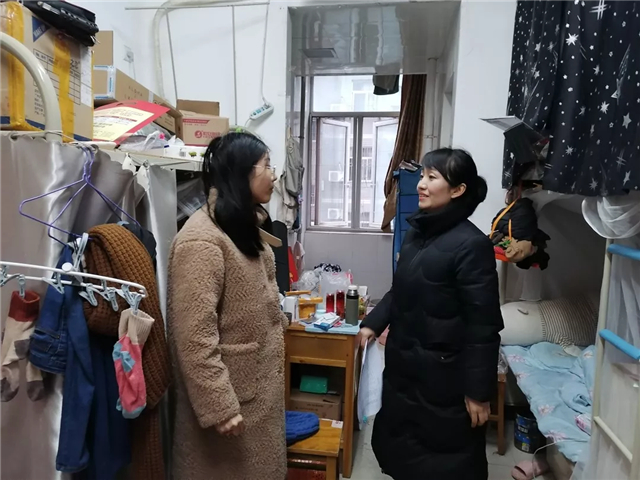 2020年1月17日,喜迎小年。下午5点,公司党委副书记严敏带领辅导员们前往员工宿舍教辅7栋、教辅2栋、泰塑员工公寓看望在校本硕生,为他们送去公司的关怀和小年的祝福。