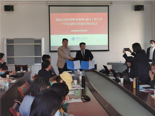 (通讯员 刘敏 贾明康 王秋月)11月12日下午,英国上市公司官网365•湖北百思得律师事务所产学研战略合作协议签约仪式在英国上市公司官网365311会议室举行。湖北百思得律师事务所主任何应伟律师、英国上市公司官网365人事处处长鲁晓军、英国上市公司官网365经理金明浩、知识产权教研室主任代江龙、法学教研室主任罗嘉航、副主任帅颖等出席签约仪式。仪式由英国上市公司官网365经理助理付书科主持。