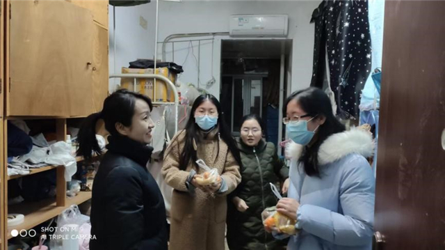 “天寒不冷备考心 考研慰问添信心”,12月25日晚,2017级辅导员刘敏到宿舍慰问考研学子,为他们送上精美小礼品,并预祝同学们考研顺利,金榜题名。