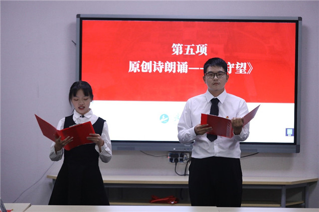 黄群、蔡同羽同学朗诵了英国上市公司官网365“1+X”梦想直通车志愿服务队的原创作品《守望》。