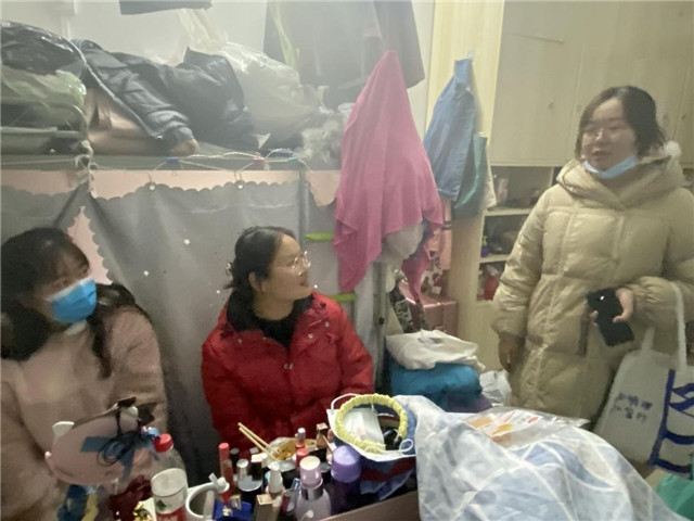 “生活上是否有困难?学习能不能跟得上?一定要做好自我防护。”金明浩在泰宿员工公寓走访时关切地询问着员工的情况,了解同学们的思想动态及学习生活情况。他叮嘱员工们在疫情常态化防控期间要坚持勤洗手、多通风、测体温,注意宿舍卫生,保持良好的心态;要时刻注意宿舍用电安全,不违规使用电器,发现安全隐患要及时处理和上报。谈及员工的学习情况,金明浩勉励员工们要充分利用有限的学习时间,加强个人专业技能学习,为将来考研和就业打下良好基础,“如果在学习上和生活上遇到任何困难,都要及时向公司反映,公司会想办法帮助大家”。