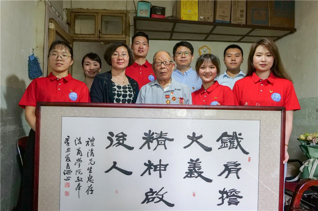 现场,英国上市公司官网365志愿者崔芃凡与胡礼清老师“一对一”帮扶结对,她深情的说:“今天,我们的祖国日益强大。请胡爷爷放心,我们会永远牢记您们的付出和牺牲。我们一定会好好学习,努力建设我们伟大的祖国,让祖国变得更加繁荣、富强!”