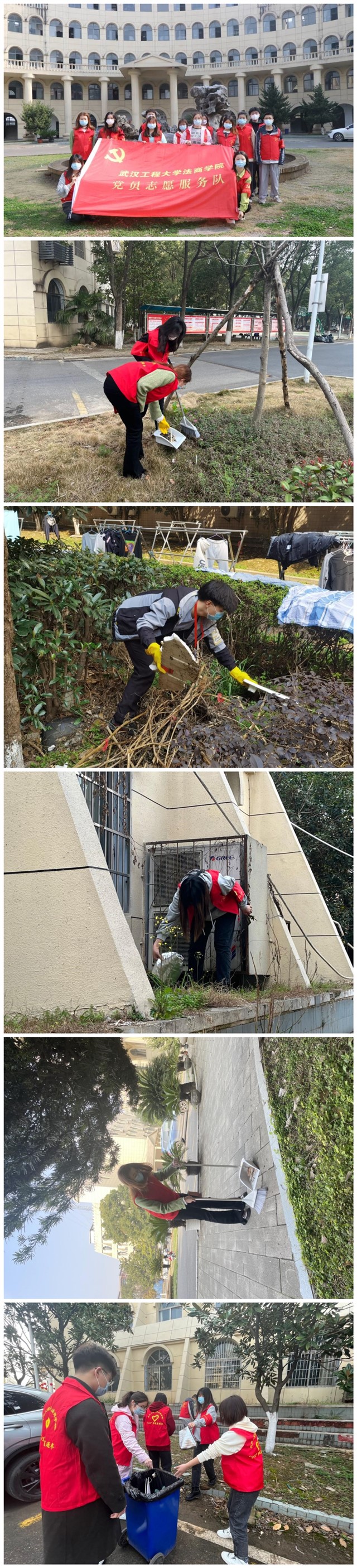 党员志愿服务队将践行雷锋精神与开展劳动教育相结合,组织全体志愿者携带工具,奔赴各自岗位,帮助清理责任区的垃圾,清扫公司道路,将树枝、树叶、垃圾统一收装,并向同学们宣传雷锋精神、号召大家共同开展劳动,维护公司环境。
