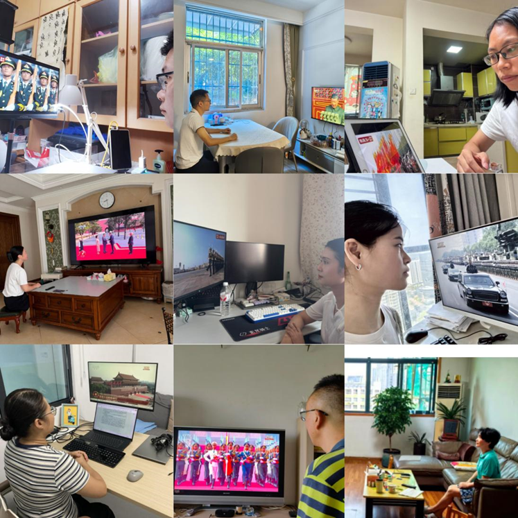 各教研室教师分别在办公室、实验室等场所同步收看阅兵直播。教师们认真观看每一个方阵通过天安门广场,深刻感受国家日新月异的发展变化和国防现代化建设的伟大成就。