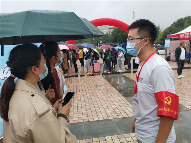 一、迎新现场志愿帮扶彰显党员初心