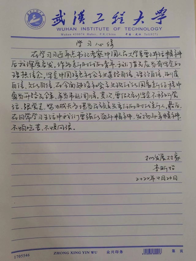 习近平总书记在中国人民大学考察时的讲话精神令人振奋!作为一名党员,我将始终牢记习近平总书记的殷切嘱托,坚定不移听党话、跟党走,加强理论学习,努力提升理论修养,把对祖国血浓于水、与人民同呼吸共命运的情感贯穿教育事业全过程、融汇在育人工程的追求中。作为一名思政工作者,我将努力深入员工、深入思想政治教育工作一线,做好自己的本职工作,从思想、生活和行为中去关心他们,努力当好员工思想教育的“指挥员”、健康生活的“管理员”、成长成才的“引路人”,不负时代,不负韶华,紧握“接力棒”,走好新时代“赶考路”,为把员工培养成德智体美劳全面发展的社会主义建设者和接班人贡献自己的青春力量。