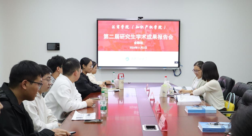 经研究生自主申报,公司初审,最终有34份优秀的学术成果脱颖而出,得以在报告会上进行展示。报告会设金融组和法学组两个分会场,由8位老师担任评委。